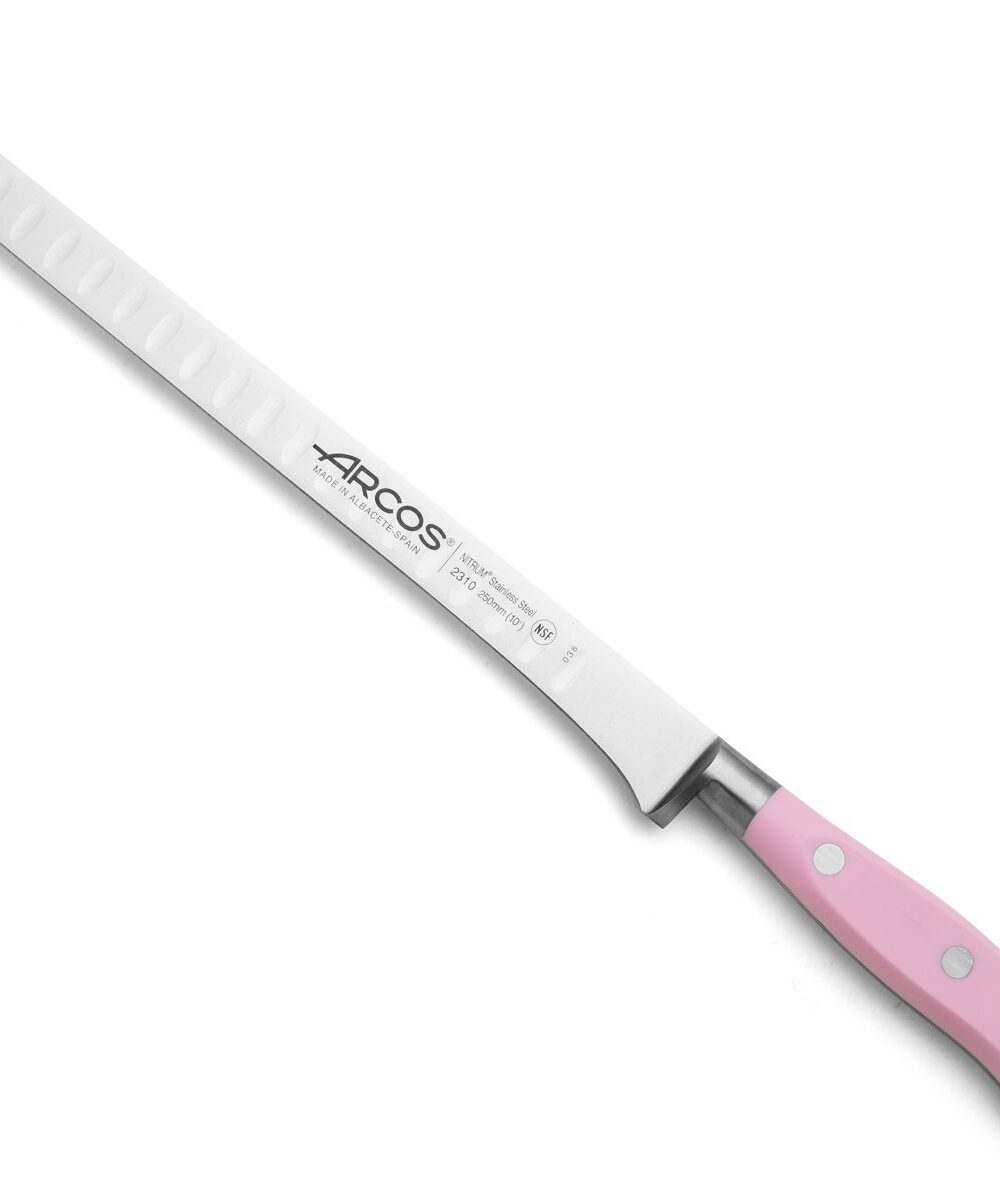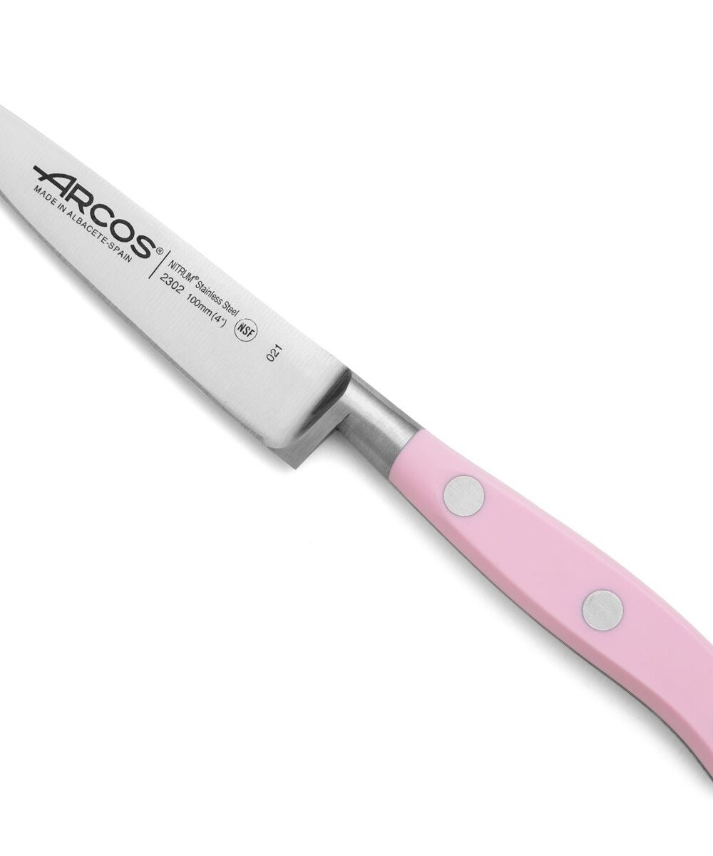 Nowy uchwyt w kolorze różowym, wykuty w jednym kawałku, z elegancką skuwką w stylu francuskim. Odporny na korozję dzięki nitom na pióro i wpust ze stali nierdzewnej.