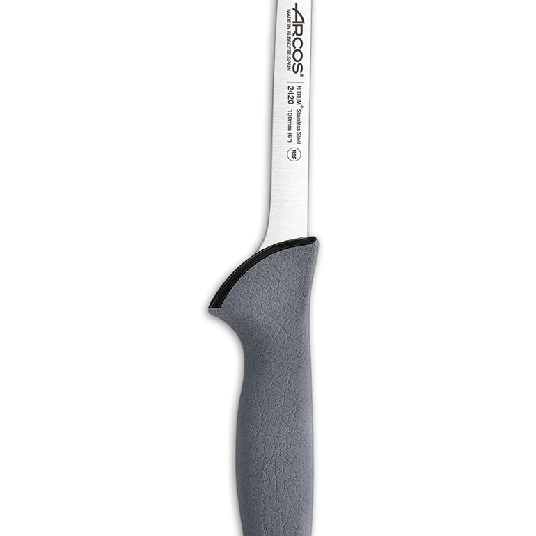 Długie, cienkie i półelastyczne ostrze o gładkiej krawędzi. Sprawnie filetuje mięso i ryby. Polipropylenowe kolorowe nakładki na ostrze pomagają oznaczać rodzaj żywności do której nóż został użyty. Zaprojektowany w celu zapewnienia idealnej kontroli higieniczno-sanitarnej.