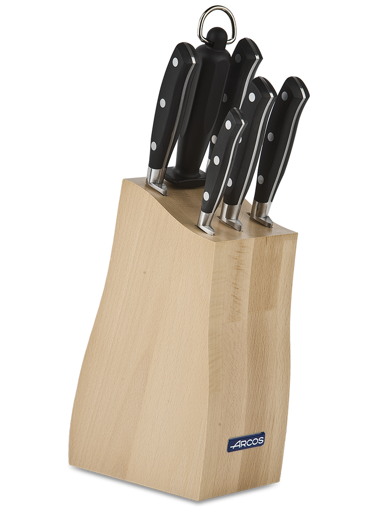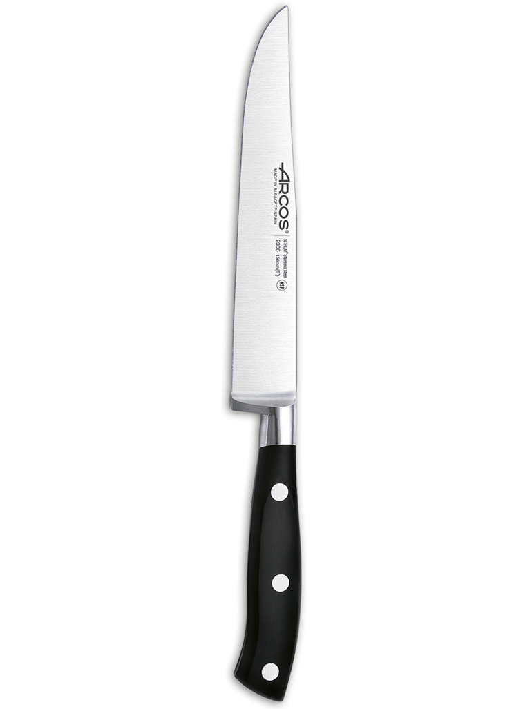 Twoje pierwsze 3 noże Arcos. Ultra ostre, niezwykle praktyczne, niezbędne minimum w każdej dobrej kuchni. To fantastyczne trio serii Riviera to 3 niezwykłe noże, w tym nóż do obierania, nóż Santoku Rocking i nóż kuchenny. Jeżeli nie posiadasz jeszcze noży Arcos zacznij od zakupu tej trójki i sprawdź sam jak zmieni się komfort twojej pracy. A jeśli znasz już tą fenomenalną jakość zamów ten zestaw noży dla bliskich lub klientów twojej firmy. Szare, aksamitne tło przepięknie eksponuje klasycznie eleganckie czarne noże serii Riviera. Arcos zadbał też o trwałość używając w ich produkcji niezwykle wytrzymałej stali NITRUM® i odpornego polioksymetylenu.