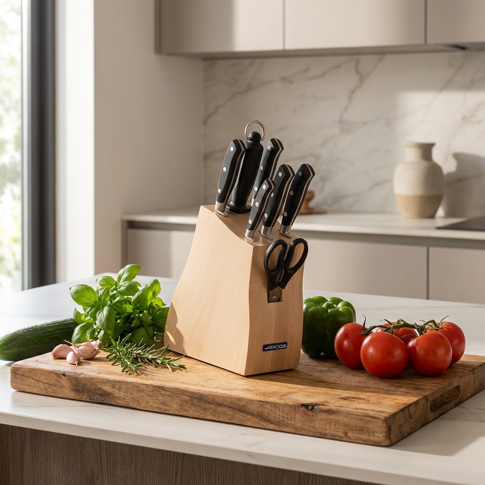 ARCOS Riviera – Profesjonalny Zestaw 5 Noży i Ostrzałki w Bloku (234200)
