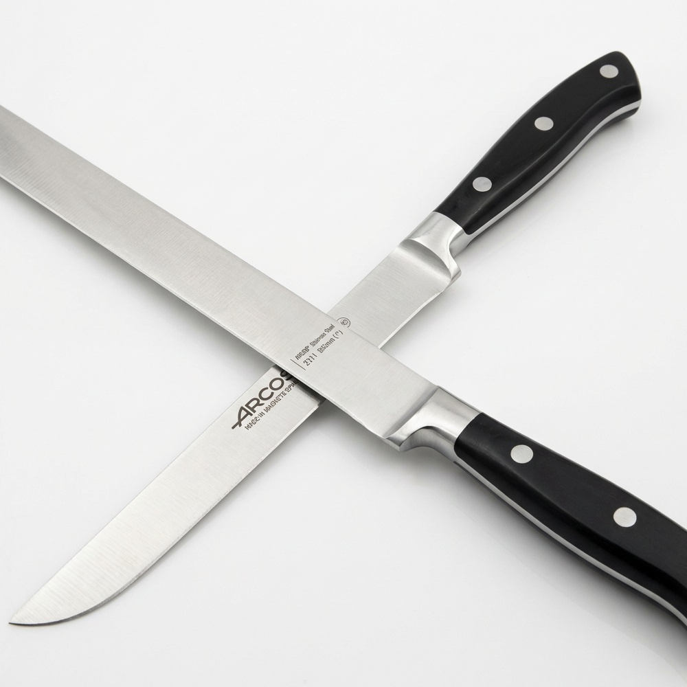 | Nóż do krojenia szynki 250mm | Długie, elastyczne ostrze | Perfekcyjne plastrowanie szynki, łososia i pieczeni. |